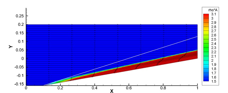 Численное моделирование взаимодействия ударных волн с пограничными слоями для течения в угле сжатия